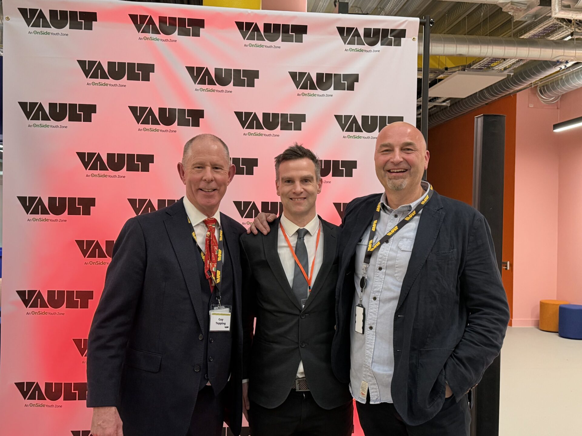 Guy Topping, chair, Vault Youth Zone, Simon England, and Tim Jacques, CEO, Vault Youth Zone.